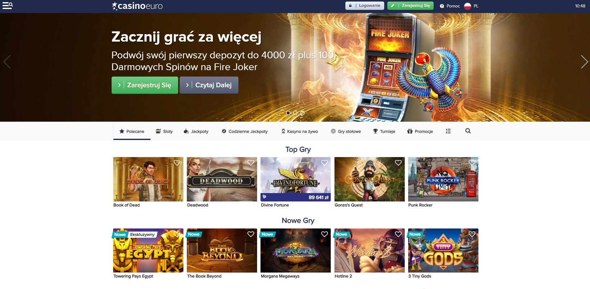 - Sloty: Book of Dead, Starburst, Wolf Gold, Piggy Riches Megaways, Esqueleto Explosivo 2, Fire Joker, Legacy Of Dead, Gonzo’s Quest, Sticky Joker, Pop Rocks, Riches Of Robin, Rainbow Hood: Shifting Riches, Fruit Shop, Legacy of Egypt.